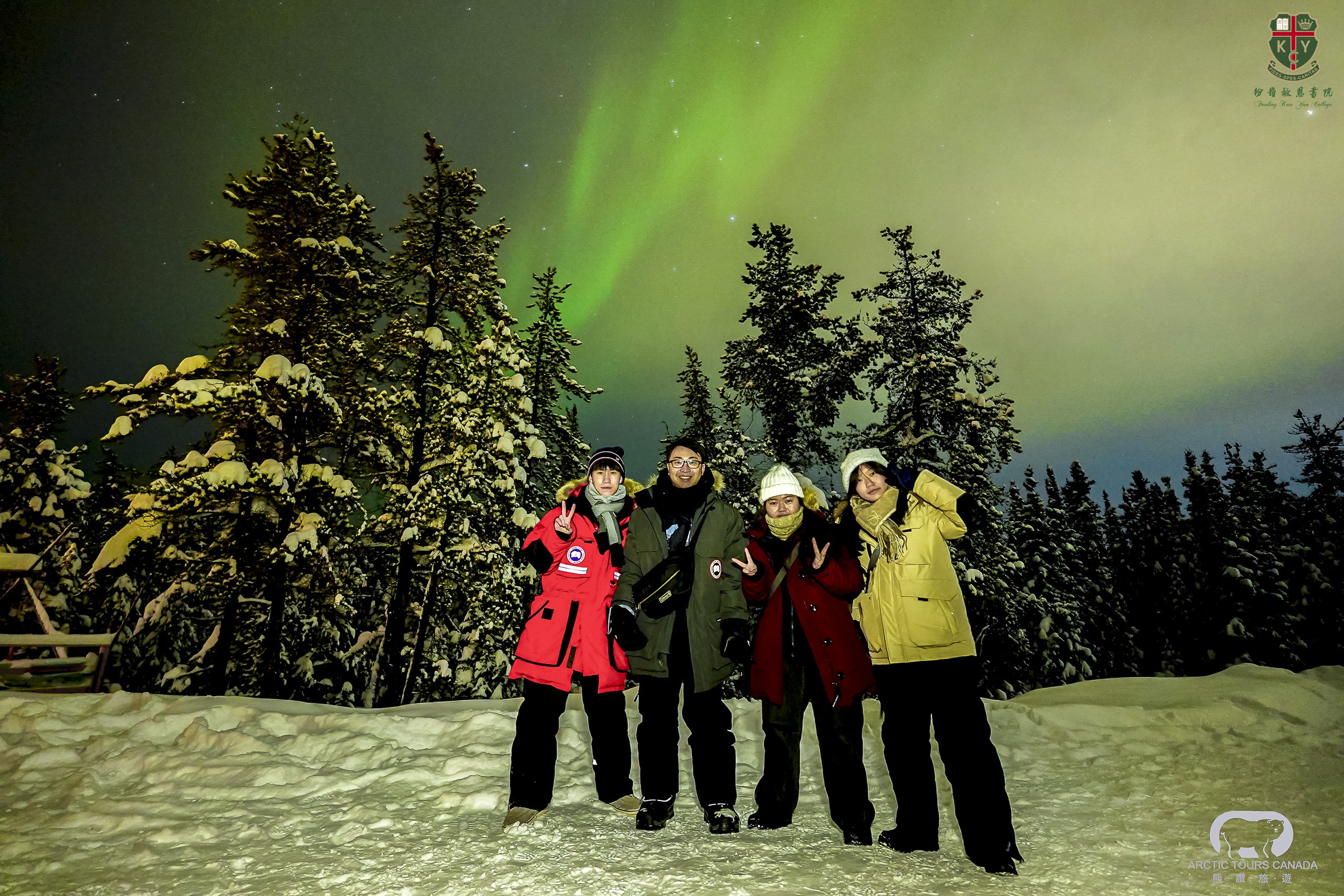 四位師生於2月11日至18日遠赴加拿大及鄰近北極圈的黃刀鎮,參與「地理極光研學團」,身處極寒星空下,師生親睹綠色極光漫天舞動,讚嘆自然奧妙,亦體驗了狗拉雪橇及冰上釣魚的極地活動。此外,師生亦到訪不列顛哥倫比亞大學 (University of British Columbia, UBC),與當地大學生共晉團年飯,深入認識當地升學及留學生活。