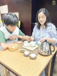 家校會於5月3日下午舉辦中華茶藝工作坊,邀請茶藝導師深入講解 中國茶文化 ,並提供親身實習機會,讓家長細心沖泡品茗,體驗茶藝的獨特韻味 。透過茶藝靜觀,不僅能放鬆心境,更能在耐心沖泡與細細品味茶的色、香、味中陶冶性情、紓解壓力 ,領略 中華文化的深遠智慧 。