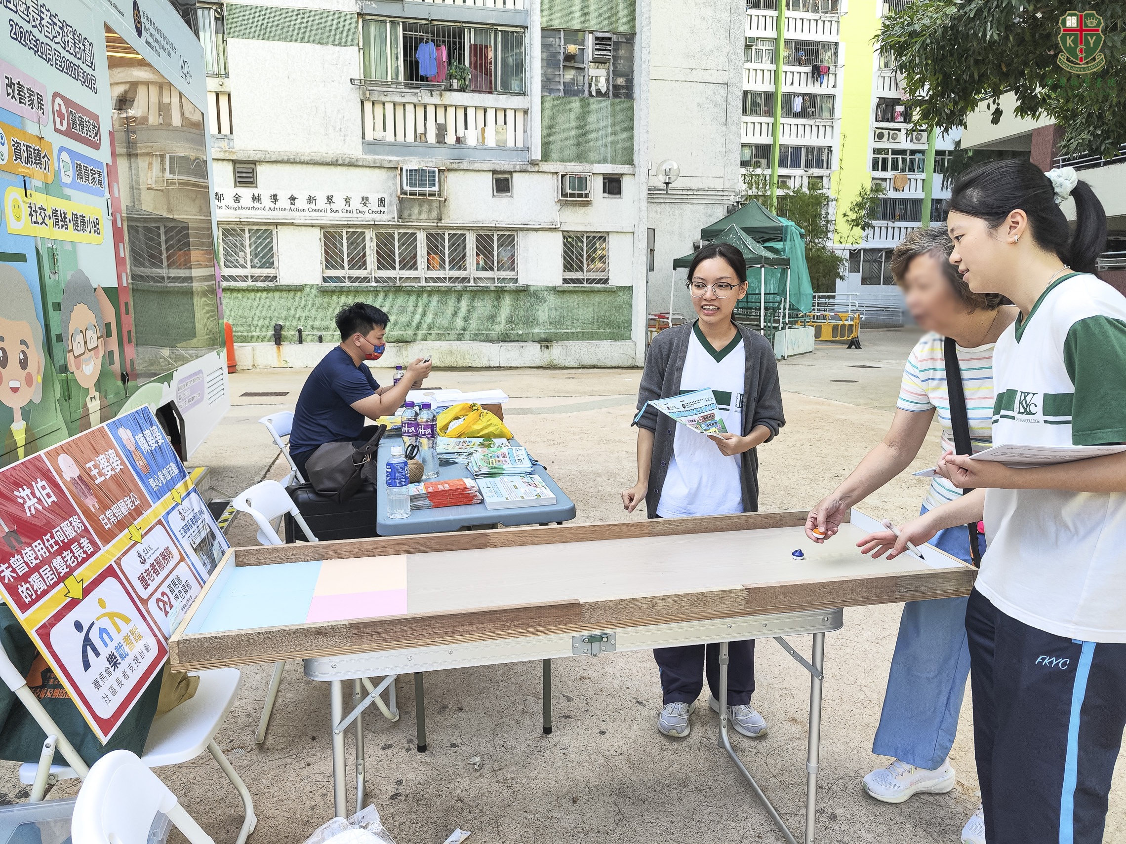 中五健康管理與社會關懷科的學生於10月18日參與賽馬會樂載耆蹤社區長者支援計劃——尋蹤流動車社會服務計劃,學生利用尋蹤流動車帶領長者參與遊戲、量度血壓及派發社區資源資訊,深化對人口老化及社會福利等課題的理解,展現對關懷社區的熱忱。