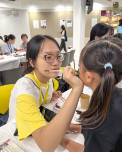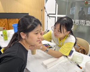 學生於11月8日參與「施達赤腳行2025」,透過為參加者進行面繪,於藝術創作中傳遞溫暖,並展現對多元社群的真摯關懷與社會服務的熱忱。