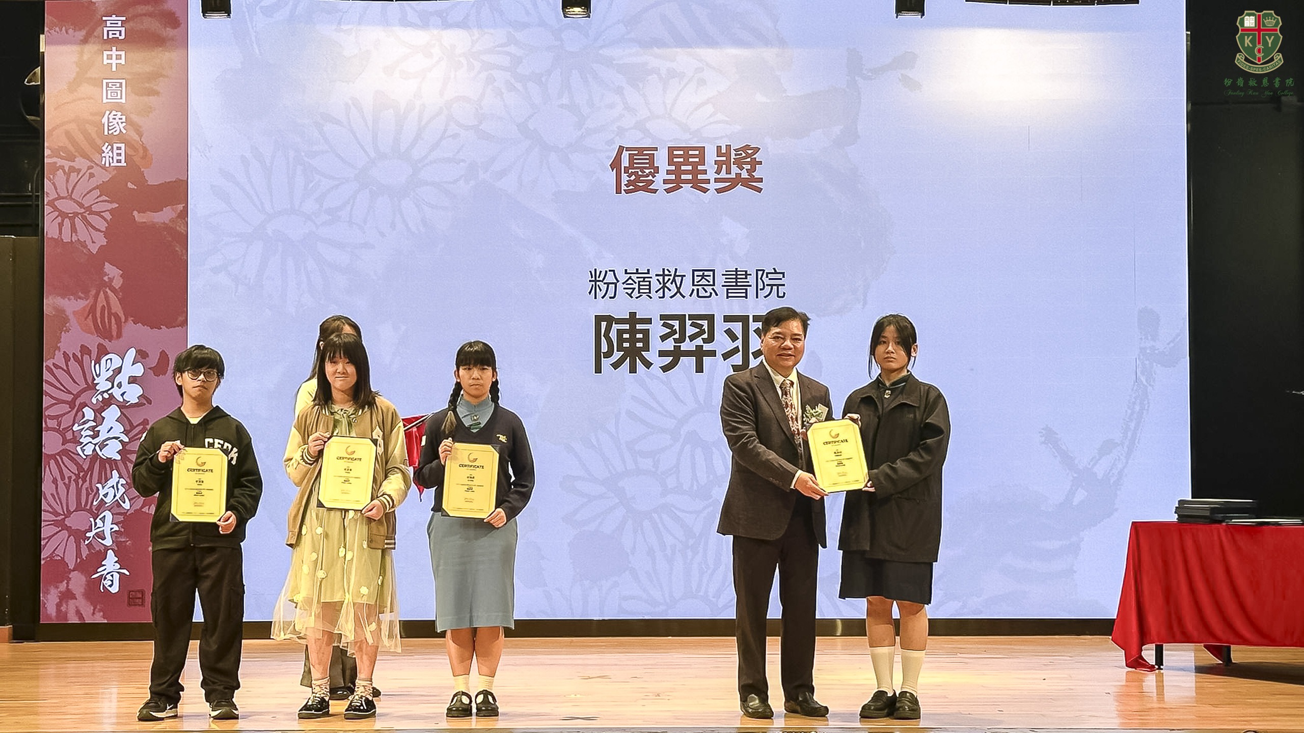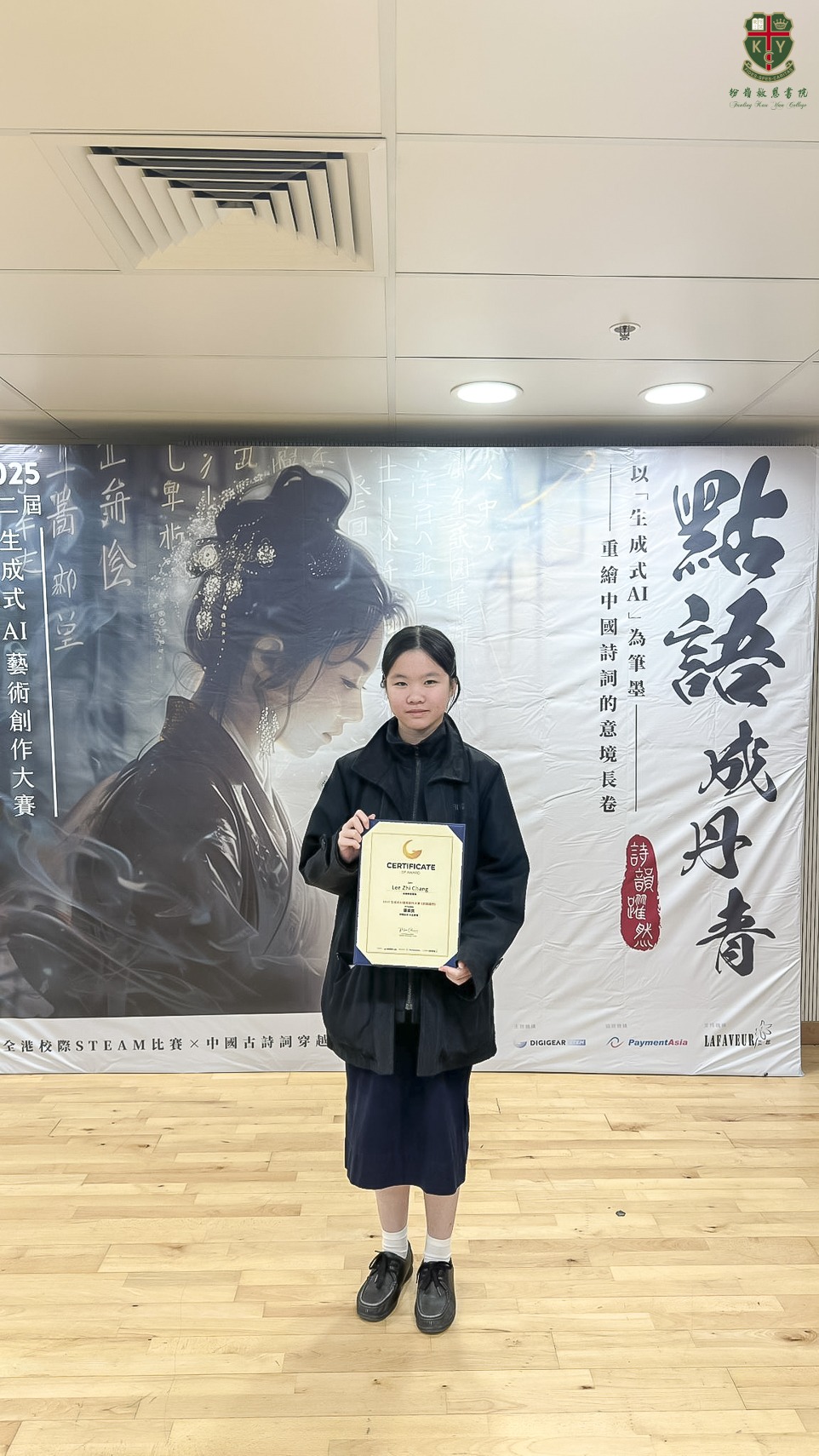 3LY李芷嫦及4NC陳羿羽於1月22日出席Digigear STEM舉辦的第二屆《點語成丹青》「詩韻躍然」比賽頒獎禮,榮獲優異獎。資訊科技科與中文學會合作,學生運用生成式AI技術將詩詞意境轉化為視覺藝術,以創新手法詮釋傳統文化,讓學生在跨科協作中綻放科技與文學交融的創意火花。